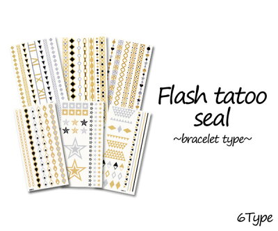 メール便送料無料【フラッシュタトゥーシール-ブレスレットタイプ-】全6種 (ブレスレット 腕輪デザイン フラワー お花 ハート 星 スター キラキラシール ジュエリータトゥー シャイニータトゥー メタリックタトゥー ゴールドタトゥー)