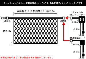 ひとつのコントローラーで3個まで連結可能! ■特徴■ AOIのイルミネーション! 【LEDライト】【50 】 LED ネットライト【耐久型】【超光】 【180球】【ブラックコード】 従来のコードが丈夫になって新登場♪