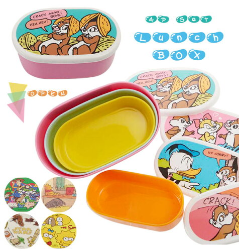 ランチボックス おしゃれ 楽天 ランチケース フードコンテナ 子供 女子 かわいい キャラクター 弁当箱 入れ子 4P 4個 ディズニー チップとデール チップ&デール トイストーリー くまのプーさん スターウォーズ シンプソンズ 450ml 280ml 180ml 100ml 幼稚園 保育園 小学生